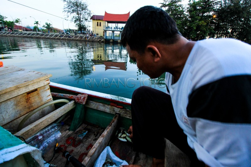 ikan hasil memancing di masukkan kedalam kantong asoy