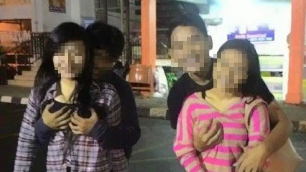 Dilihat dari foto tersebut, sepertinya kedua perempuan ini biasa saja ketika dadanya diraba oleh kedua laki-laki yang tidak diketahui status dari kedua pasangan tersebut.
