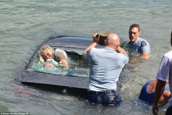 Kejadian yang terjadi di the Waitemata Harbour, Auklan, Salandia Baru ini terjadi sangat menegangkan, karena mobil si wanita itu masuk ke dalam dermaga dan tenggelam dengan sangat cepat.