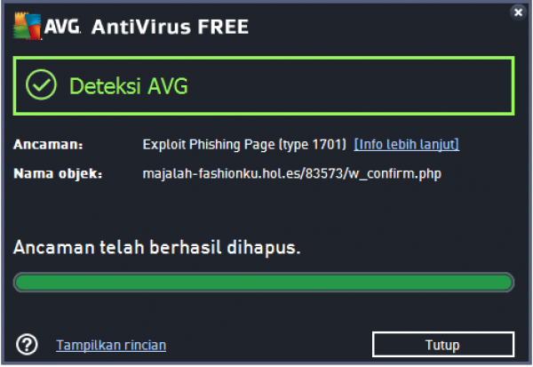 kini hadir sebuah phising terbaru, aplikasi ini ketika di klik mengarahkan pembacanya ke sebuah link yang ber ekstensi w_confirm.php, AVG menyebutnya sebagai link yang tidak aman untuk di akses. Phising ini menyebar dengan salah satu cara yaitu aplikasi chat di facebook.